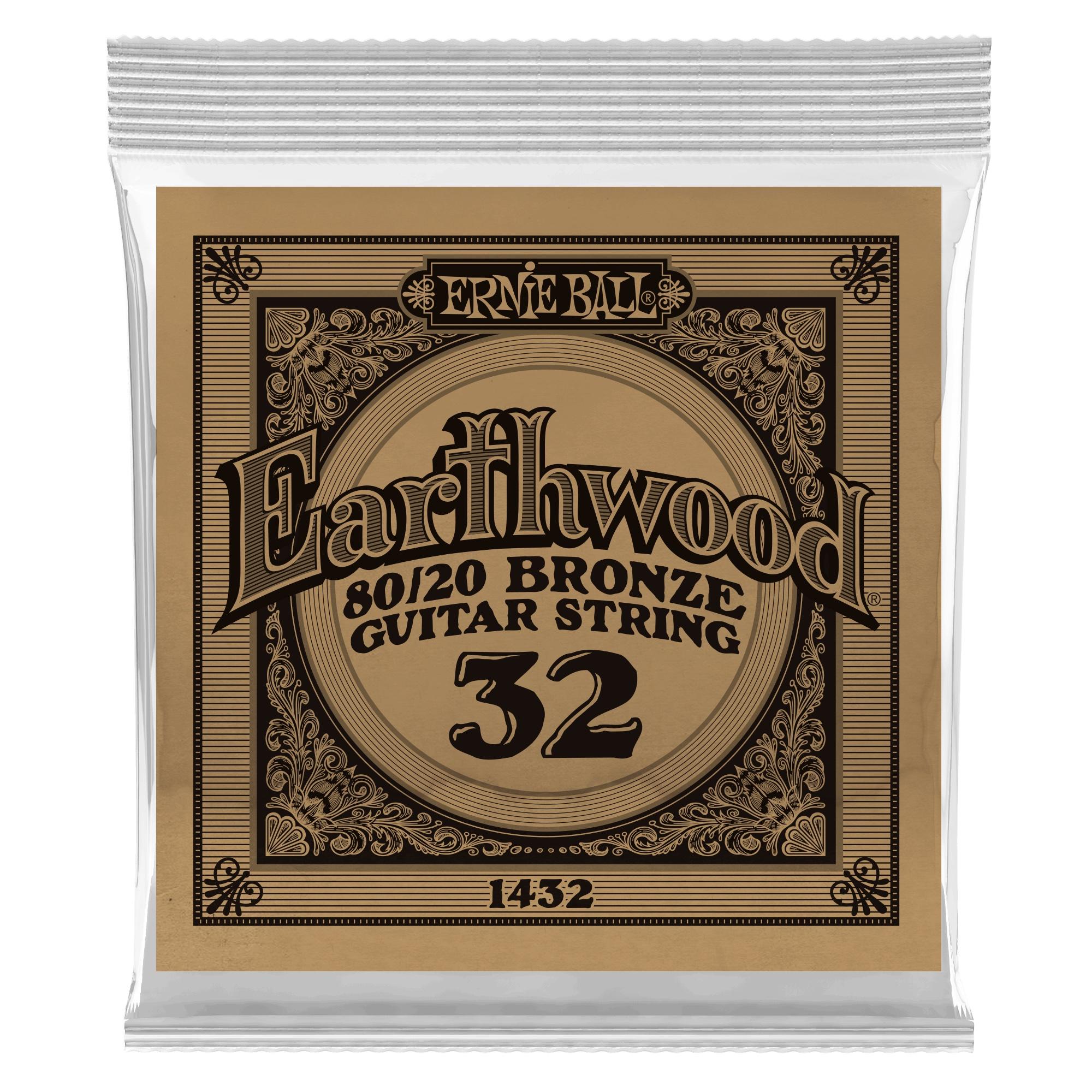 1432 .032 Earthwood 80/20 Bronze Acoustic Guitar Strings Single Ernie Ball