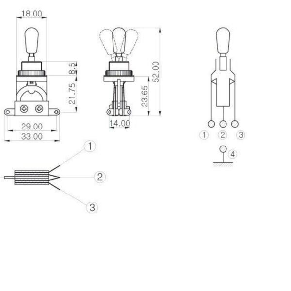 3-way, straight, Les Paul StyleChrome shaft, thread and nut