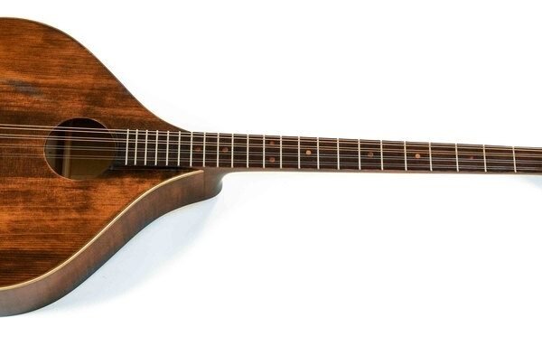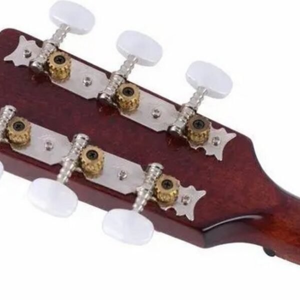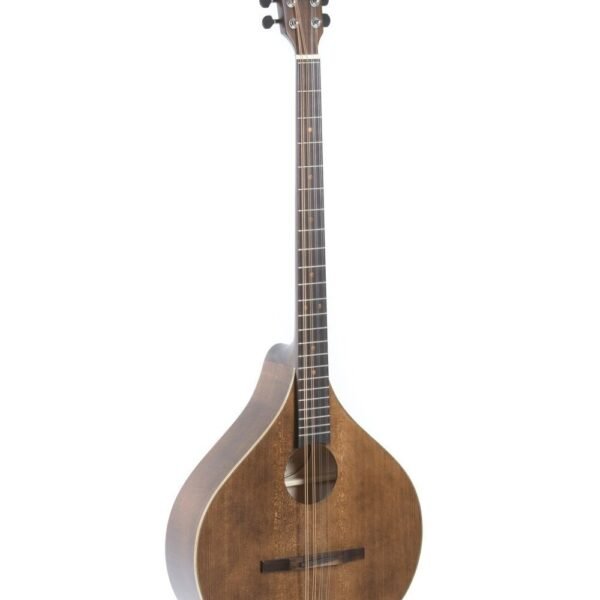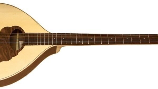 Flat bouzouki – Irish shapeSolid spruce top, inlaid wooden pickguardWalnut back and sidesMaple neck, window head, acacia fingerboard, 24 nickel