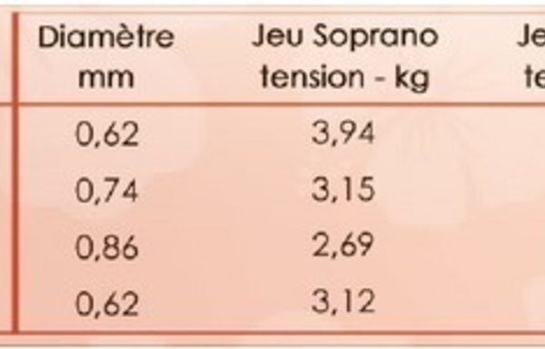 New string set developed from the outstanding Alliance materialFor tenor ukulele scale 430 mmTensions:A1: 0.57mm 5.17kgE2: 0.69mm 4.26kgC3: 0.81mm 3.7kg