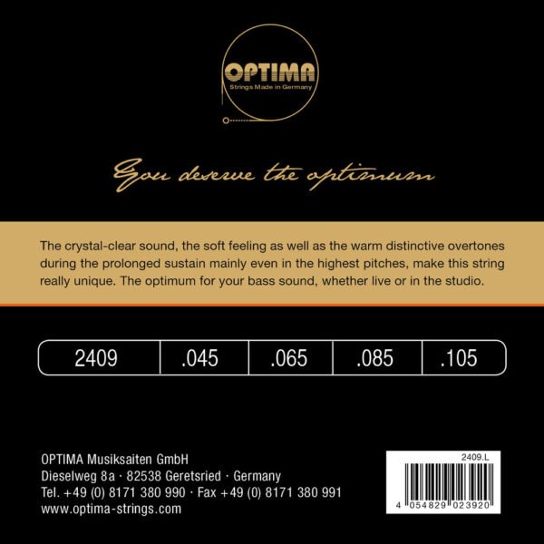 Round wound Gold Bass strings:24 Karat gold platedLong scale 34 = 88cmAvailable in 4 different tensions and as set for