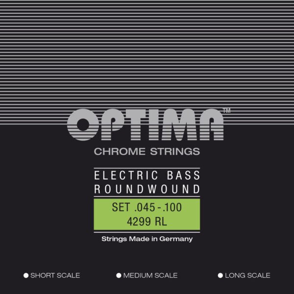 Chrome round wound bass-StringsMedium Scale 33,5 = 85cmAvailable in 2 different tensionsMade in Germany4299 M Medium Scalelight .045 .060 .080