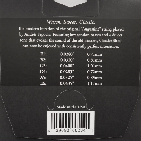 Pro-Arte, the world’s most popular classical strings are D’Addario’s premium classical guitar string sets. All Pro-Arte treble strings are sorted by a sophisticated computer-controlled laser machine which performs diameter and tension measurements, ensuring true-sounding, precise trebles in every set. Pro-Arte basses are wound using silver-plated copper on a multi-filament nylon core for consistent and warm, yet projecting tone.
